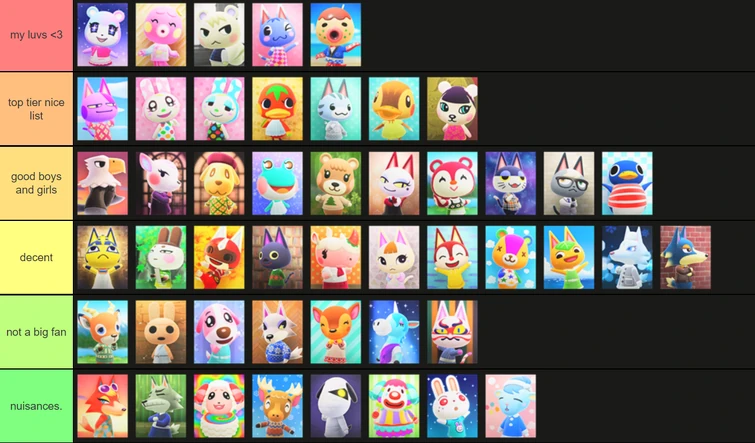 My Personal Animal Crossing Villagers Tier List Full Bias R Animalcrossing